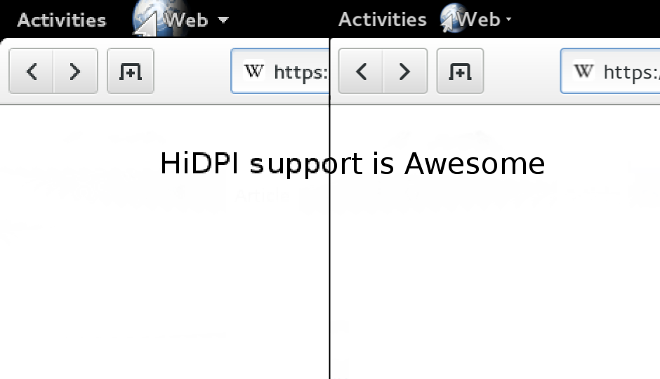 با وجود آنکه نسخهی پیشین گنوم بخش مهمی از بهبودهای لازم برای پشتیبانی از صفحات نمایش با چگالی پیکسل بالا نظیر آنچه در مکبوکهای رتینا شاهد آن هستیم را در بر داشت، اما تکمیل این ویژگی در نسخهی جدید که اکنون شاهد آن هستیم اعمال شده و از این پس پشتیبانی از صفحات نمایش HiDPI در قسمتهای اصلی این محیط گرافیکی نظیر Activities Overview، صفحهی قفل و دیالوگهای سیستم به خوبی بعمل میآید.با وجود آنکه نسخهی پیشین گنوم بخش مهمی از بهبودهای لازم برای پشتیبانی از صفحات نمایش با چگالی پیکسل بالا نظیر آنچه در مکبوکهای رتینا شاهد آن هستیم را در بر داشت، اما تکمیل این ویژگی در نسخهی جدید که اکنون شاهد آن هستیم اعمال شده و از این پس پشتیبانی از صفحات نمایش HiDPI در قسمتهای اصلی این محیط گرافیکی نظیر Activities Overview، صفحهی قفل و دیالوگهای سیستم به خوبی بعمل میآید.